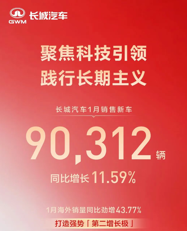 从区域来看,1月长城汽车海外销售40278辆,海外市场成为重要增长引擎。