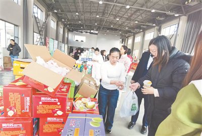 “扫码免费领取了‘福’字,真开心。”“肉类礼盒太抢手了,居然被秒光了。”职工们一边抢购所需物品,一边开心地交流。活动现场,北京工美集团、全聚德、北京一轻控股、首农集团等20余家企业带来的名优精品整齐陈列,吸引了大批职工驻足选购。从日常所需的民生粮油到提质生活的健康医疗与非遗文创,数千种甄选产品精准对接了职工的“购物清单”。利用工间休息,各驻园企业职工开启了欢乐采购,红火的内购场景将金隅智造工场的科技秀场瞬间变成了红火的新春集市。