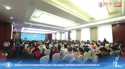 1月30日至31日,由世界中联传统医药非物质文化遗产工作委员会主办,津药达仁堂、益德成共同承办的“传统医药非遗保护传承与创新发展研讨会”在天津举行。同期,世界中联传统医药非物质文化遗产工作委员会成功召开换届大会。来自全国的中医药领域院士专家、非遗传承人、行业代表齐聚一堂,共商传统医药非遗保护大计,共绘传承创新发展蓝图,为古老智慧注入时代活力。