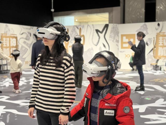 观众头戴VR设备体验《封神前传》