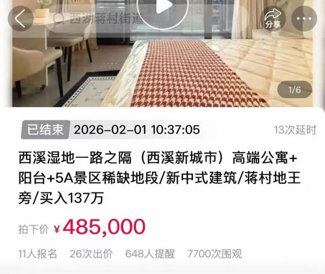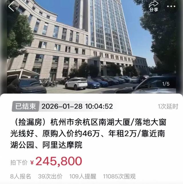 据记者统计,2026年刚开年仅一个月,阿里资产上杭州公寓类的商拍就已成交了56套,有40套在50次出价以上,其中出价百次以上的则有8套。