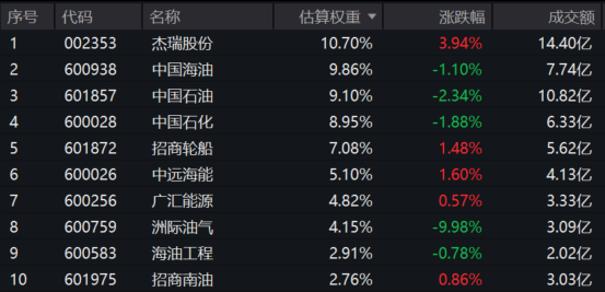 油气ETF汇添富(159309)标的指数权重股涨跌互现:杰瑞股份涨近4%,招商轮船、中远海能涨超1%。下跌方面,洲际油气跌停,中国石油跌超2%,中国海油、中国石化跌超1%。