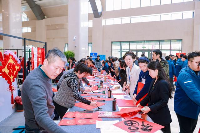 主舞台外围,同期拉开帷幕的“新春游园会”也是一片欢声笑语,年味十足。在“翰墨迎春区”,书法家们挥毫泼墨,一幅幅寓意吉祥的春联和“福”字赠予职工,墨香传递祝福。