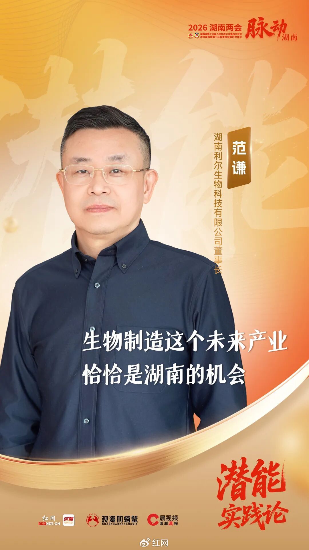 2026年湖南省两会召开之际,红网重磅推出6组政论体系列报道《潜能实践论》,从实践、观点等多维角度,探寻湖南的机遇与风口。今天推出第三组“科创篇”,受访嘉宾分别为湖南利尔生物科技有限公司董事长范谦和津市市委书记彭子晟。