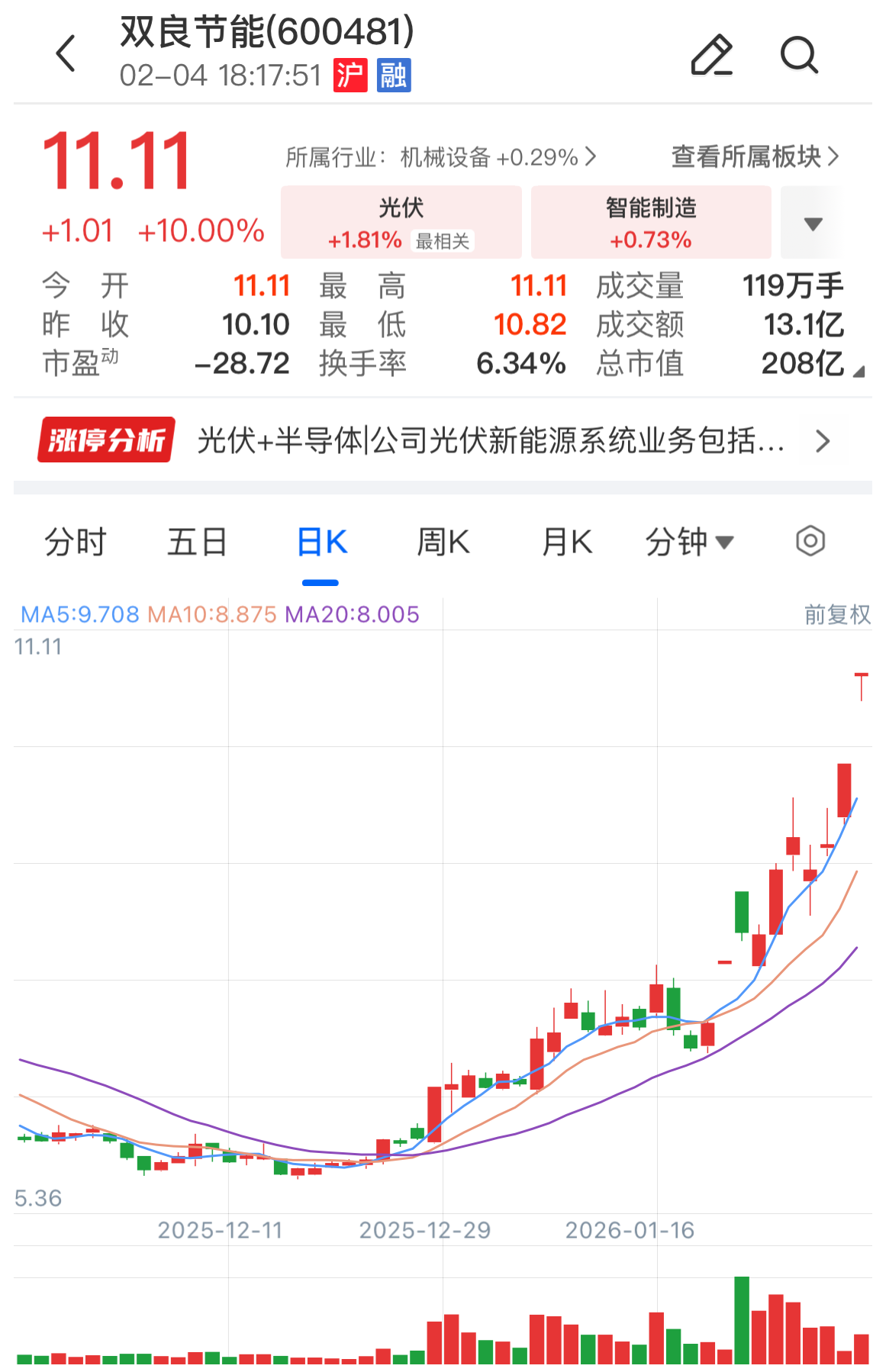 双良节能近两日同样录得“两连板”,在公告中,公司指出,近期资本市场对“太空光伏”等概念关注度较高,相关板块市场表现较为活跃。截至目前,“太空光伏”相关应用场景尚处于探索阶段,产业化进程仍面临重大不确定性,公司目前尚未开展太空光伏相关的业务,对公司当前业绩无实质性影响。敬请投资者注意理性判断,防范投资风险。