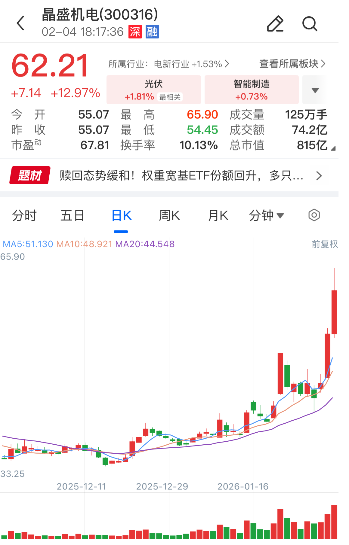 “两连板”的国晟科技在公告中称,有部分自媒体报道公司为某商业航天公司提供HJT光伏系统、公司涉及太空光伏业务等信息。公司的异质结(HJT)电池组件产品主要应用于集中式电站、分布式电站等场景,公司目前未涉及太空光伏业务,请投资者注意理性判断。