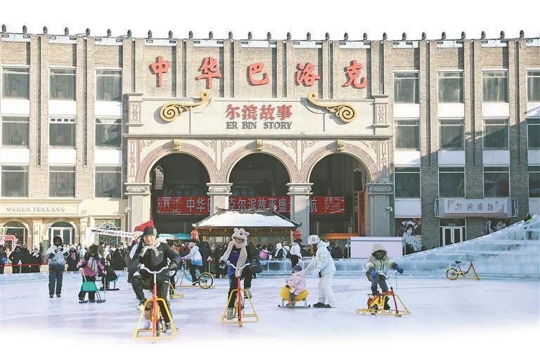 近日,记者来到巴洛克广场,在800余平方米的“回到八零年代”冰场上,冰上自行车、冰爬犁、冰滑梯等经典冰雪项目深受欢迎,人气爆棚。孩子们在冰面肆意嬉戏,亲子协作体验传统冰雪乐趣,欢声笑语弥漫整条老街。“带着孩子来体验童年的冰雪乐趣,看着他开心的样子,自己仿佛回到了小时候,百年老街的冰场藏着最地道的东北年味。”市民刘先生笑着说。