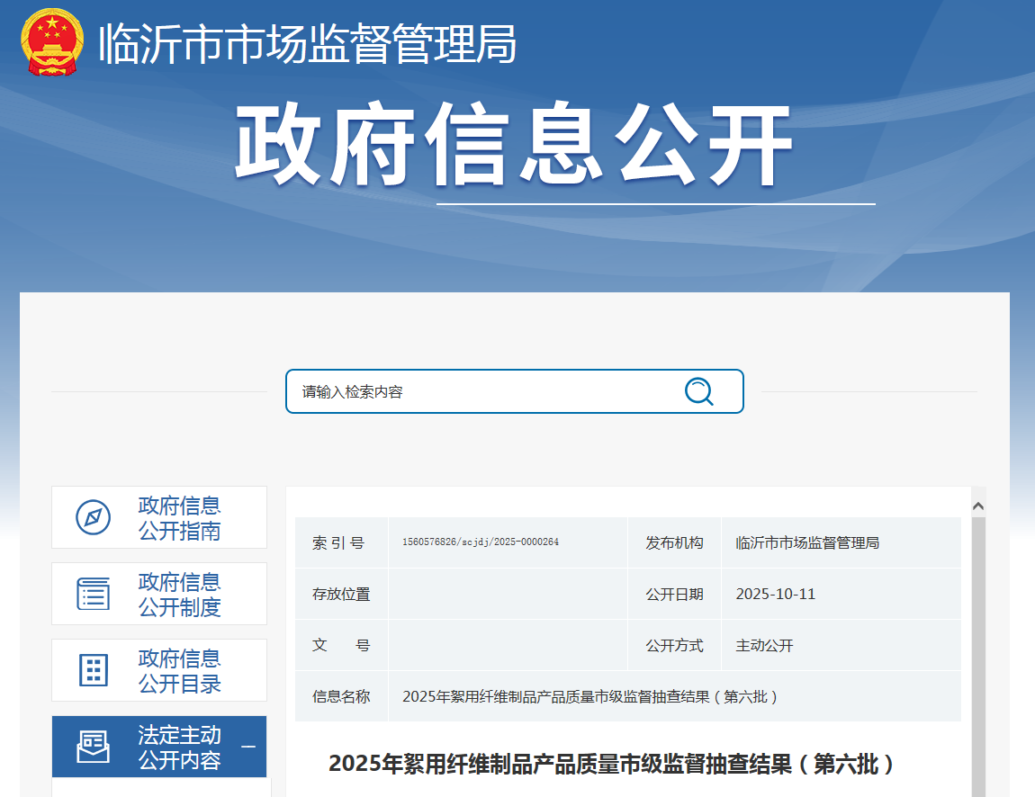 中国质量新闻网讯 据山东省临沂市市场监督管理局网站消息,近日,临沂市市场监督管理局公布2025年絮用纤维制品产品质量市级监督抽查结果(第六批)。本次共抽查絮用纤维制品产品8批次,其中生产环节2批次,销售环节6批次。