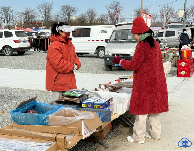 天津商品受欢迎,本地商户也敏锐捕捉到商机。专卖海鲜的王满是通州区永乐店镇本地人,但货品都来自天津。“我凌晨3点去天津王顶堤市场进货,往返连上货差不多3小时。”她在永乐店大集已摆摊8年,“今年1月1日大集改造后,人流量多了很多,天津、河北的顾客都过来。”