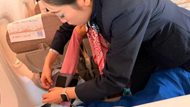 “现在您感觉如何?别担心,有什么不适请立刻告诉我们。”乘务员王梦园全程守在旅客身边,一边安抚情绪,一边及时按照医务人员要求定时监测体征、留意病情变化,并做好详细记录。其他乘务人员则在保障航班正常运行的同时,多次询问旅客状态,及时与医护团队沟通反馈细节。机长胡祥提前与地面保障团队联动,申请了轮椅服务,为旅客争取宝贵的救治时间与安全保障。