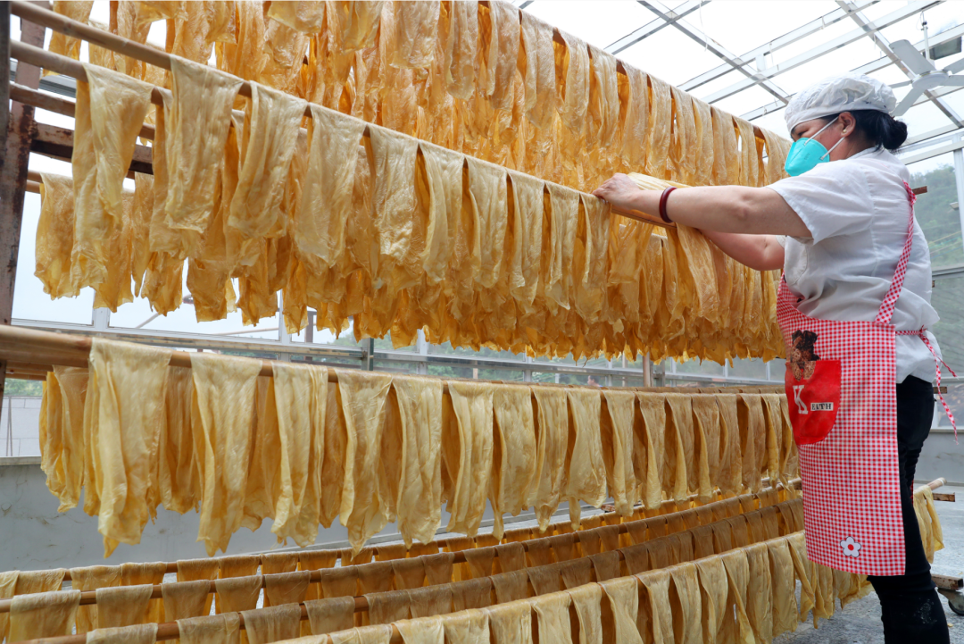 托洞腐竹是云浮市著名特产之一,产地位于云安区石城镇,传统手工工艺代代传承,有着深厚的加工历史底蕴,至今已有200多年历史,这片小小的方寸“黄金”还有着“国家地理标志产品”的头衔,这无疑是对其独特品质的最好认可。托洞腐竹具有色鲜体薄、油亮清香、韧脆爽口、营养丰富、易消化、增食欲等特点,在云浮人的饭桌上总少不了它的身影。无论是凉拌、炒菜还是煮汤,托洞腐竹都能为菜肴增添独特的风味,让每一餐都充满“曼妙”滋味。
