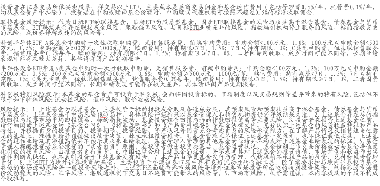 科创半导体ETF(588170):跟踪指数是科创板唯一的半导体设备主题指数,其中先进封装含量在全市场中最高(约50%),聚焦于科技创新前沿的硬核设备公司。