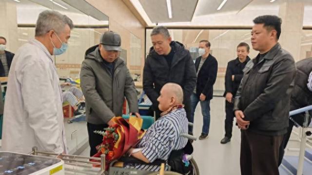 走访慰问“优抚病区”退役军人及优抚对象。主办单位供图上海市拥军优属基金会宝山区会会长倪诗杰、区退役局人事务局局长赵志敏、宝山区团委书记肖寒,在高境镇党委书记陈一岚和吴淞街道办事处副主任秦晋一陪同下,先后走访慰问15名入住上海礼孝护理院六楼“优抚病区”和11名入住上海通大中医医院四楼“优抚病区”的退役军人和优抚对象,并送上慰问品和鲜花,以实际行动传递尊崇与关爱。