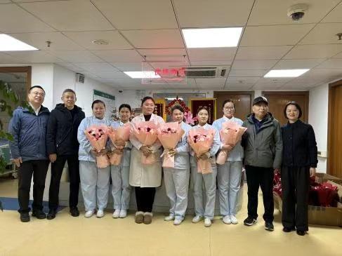 倪诗杰会长表示:“退役军人和优抚对象是国家的宝贵财富,是民族精神的象征,使他们老有所医、老有所靠、老有所爱,是我们党和政府以及社会力量责任所在。随后,慰问团队向医护人员送上鲜花并留影,向他们表示感谢和崇高敬意,希望医护人员要用心用情做好拥军优属服务工作,发挥专业性崇敬关爱医疗康复服务,让他们安享幸福晚年,共享改革开放的发展成果”。