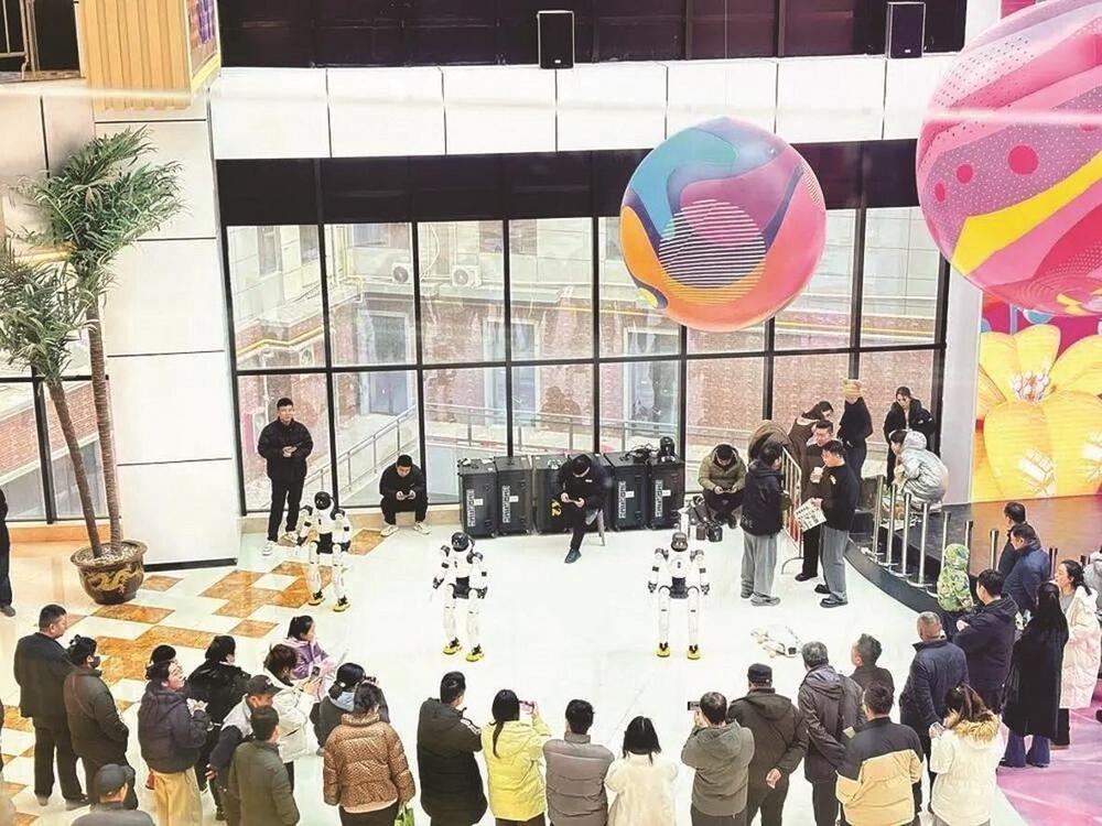本报讯(武成军)翻跟头、撑地起身、姿态同步……日前,在邯郸东悦荟City开业现场,六架人形机器人以灵活流畅、整齐划一的动作惊艳亮相,精准卡点的互动表演吸引市民驻足围观、打卡互动,成为商场开业当天的“流量焦点”。