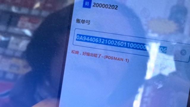 收银员用POS机扫描记者手里的账单,页面上提示“哎呦,好像出错了”。