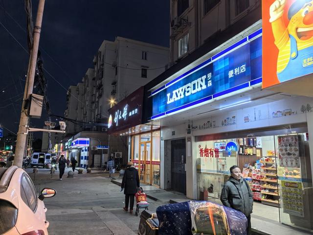 新村路492号的罗森便利店,远处是一家好德便利店。便利店有着营业时间延长、门店网络的广泛覆盖的优势,能代收水电煤费用确实给老人带来极大便利。