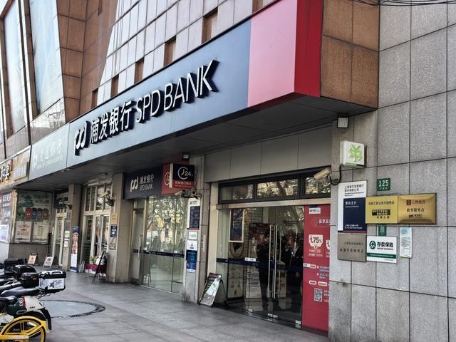 挂着“一网通办政务服务点”牌子的兰溪路125号的浦发银行网点。