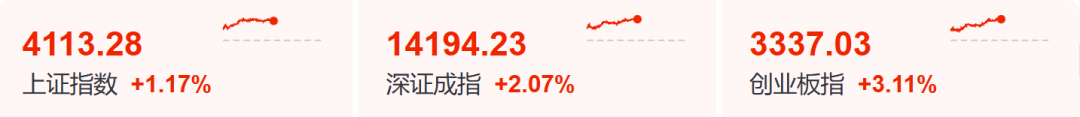 A股市场上午高开高走,截至午间收盘,上证指数涨1.17%,深证成指涨2.07%;创业板指猛涨100.57点,涨幅为3.11%。