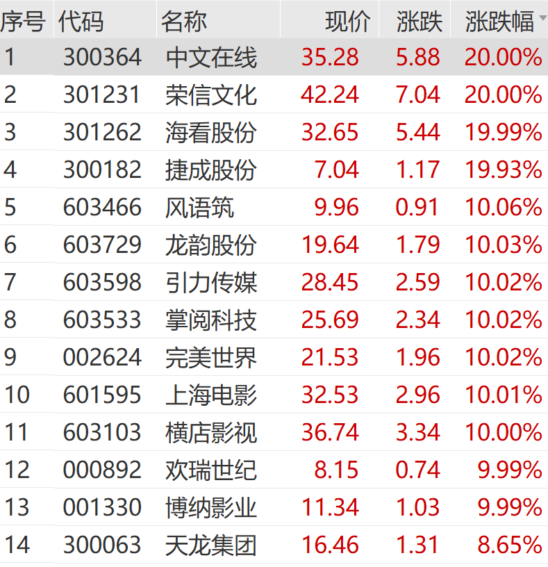 2月9日上午,传媒板块大面积涨停,短剧游戏、虚拟人、网红经济等方面走强。个股方面,中文在线、荣信文化、海看股份、捷成股份、风语筑等十余股集体涨停。