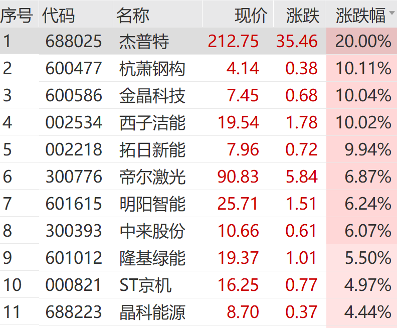 2月9日上午,太空光伏概念股持续活跃,杰普特20cm涨停,金晶科技、西子洁能、拓日新能等纷纷涨停。