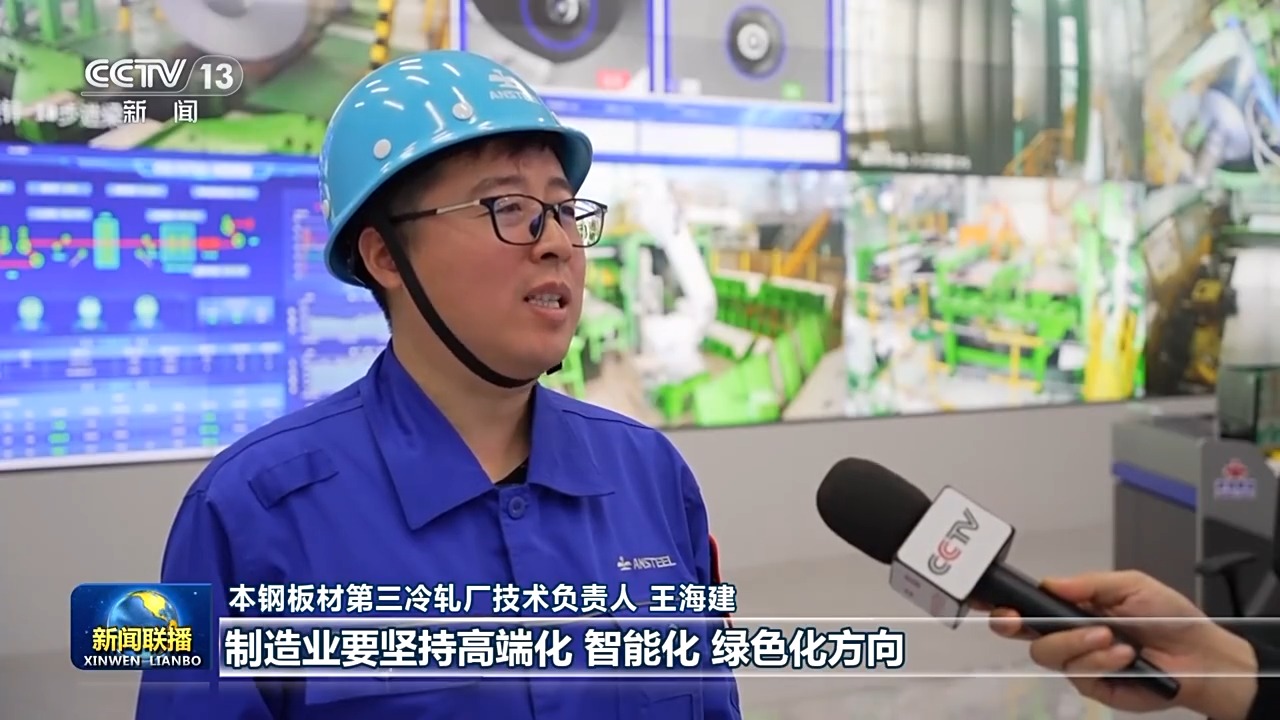 本钢板材第三冷轧厂技术负责人 王海建:习近平总书记到我们厂考察时指出,制造业要坚持高端化、智能化、绿色化方向。我们牢记总书记的殷殷嘱托,全面建设智慧化工厂,形成从生产到运营,从管控到运输的全流程智能集群。不仅让传统冷轧产业变得更加高效,也让企业在高端冷轧板的市场份额抢占了先机。
