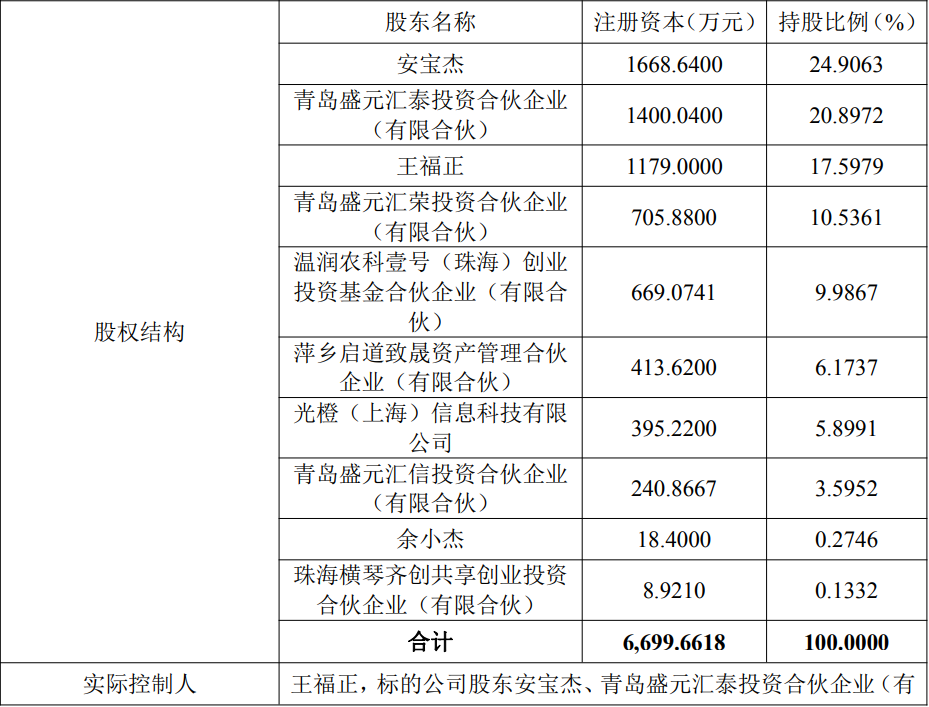 出让方,温润农科壹号(珠海)创业投资基金合伙企业(有限合伙)(温氏投资在管基金,2022年通过其A轮融资,持股占比约9.99%)、萍乡启道致晟资产管理合伙企业(有限合伙)、光橙(上海)信息科技有限公司、珠海横琴齐创共享创业投资合伙企业(有限合伙)4位原股东,将向温氏投资合计转让约22.19%股权,交易对价合计4438.54万元。