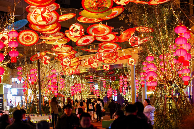 传统文化焕新是本次活动亮点,戏曲美学贯穿南北区域,北区以戏曲头冠、南区以油伞为设计灵感,搭配灯光装置,打造昼夜皆美的水岸景观。市集活动丰富多样,2月6日至8日的年货市集汇聚南北风味与新潮品牌;2月20日至23日的非遗市集集结竹编、拓印等技艺,市民可与手艺人互动、亲手制作,感受传统文化温度。此外,每周末还有京剧、皮影戏等非遗展演及舞龙舞狮、跨朝代巡游等活动,上演流动的古今对话。