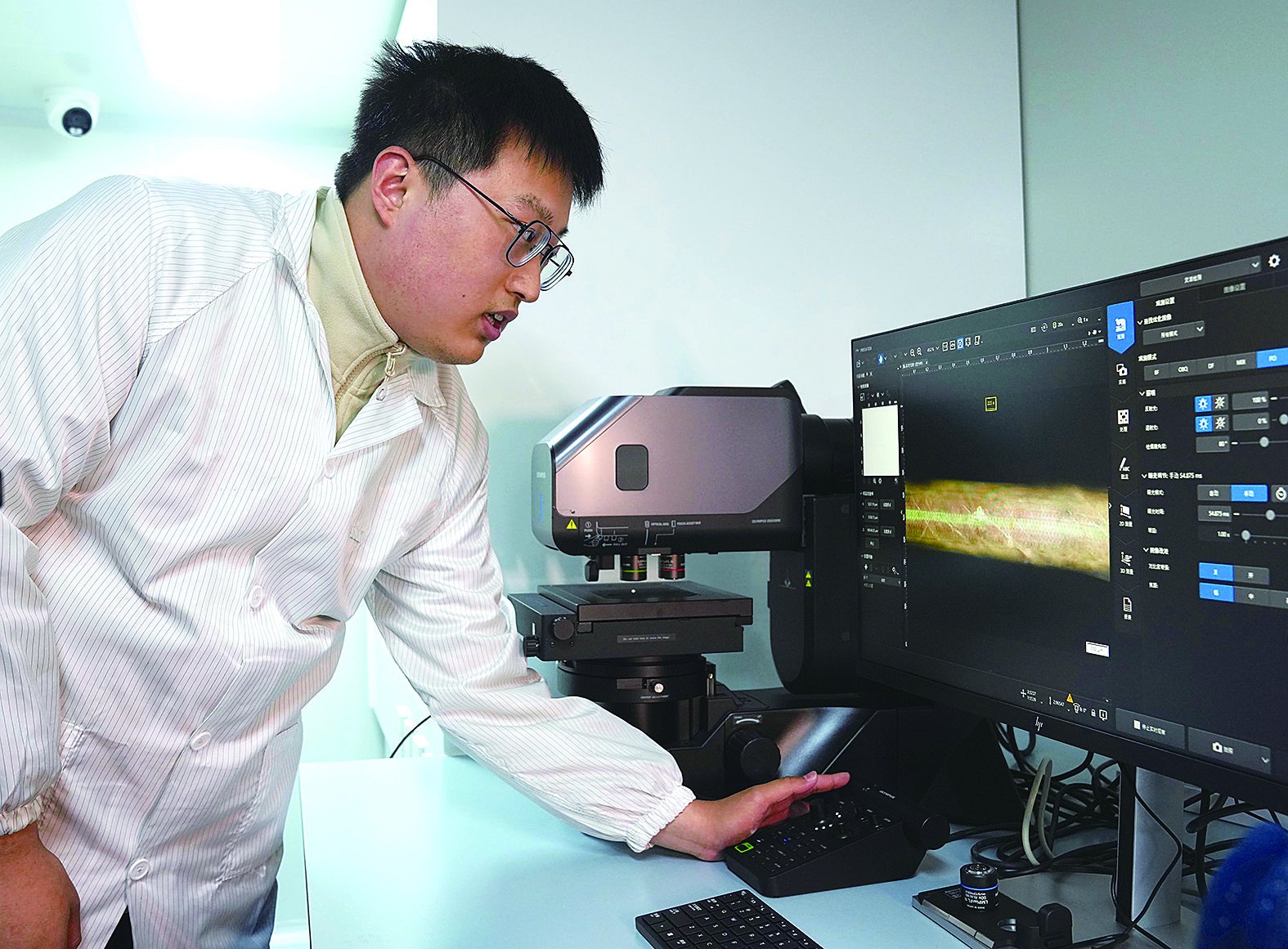 图为日前科研人员正在展示“纤维芯片”的照片。 刘 颖 摄