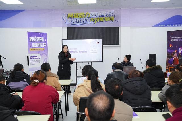 为了提升基层的平均诊疗水平,近期,普安县政府、卫健局等部门联合蚂蚁集团、阿里巴巴公益共同组织“村医AI技能培训”,教村医们学会用AI健康助手“蚂蚁阿福”来辅助日常的诊疗工作。首场培训吸引了4个乡镇的40多位村医报名,其中有返乡扎根农村的00后大学生,也有已行医近30载的68岁老村医。普安县卫生健康局副局长吴军表示,接下来还将举办更多的AI技能培训,直至覆盖普安县所有乡村医生。
