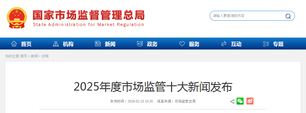 2025年度市场监管十大新闻发布
