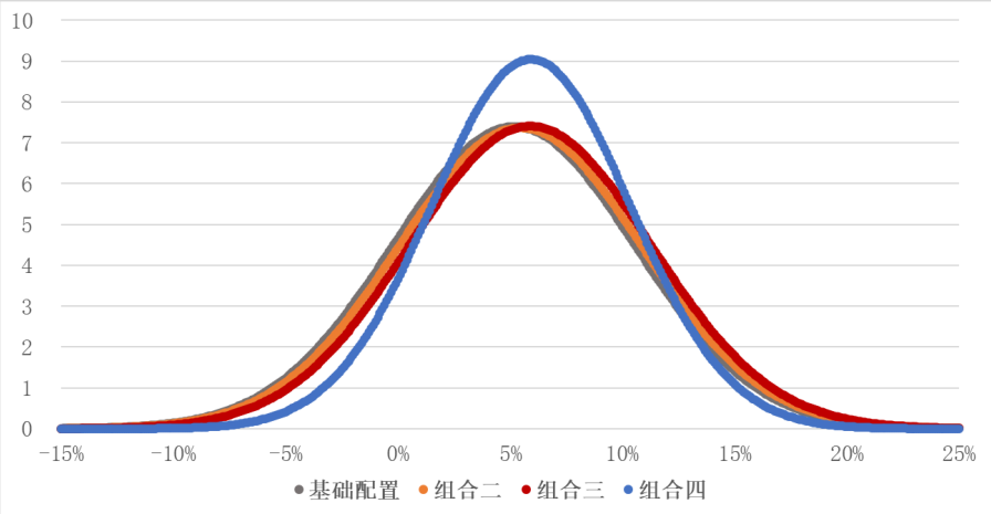 图3:四个组合收益率的概率分布图