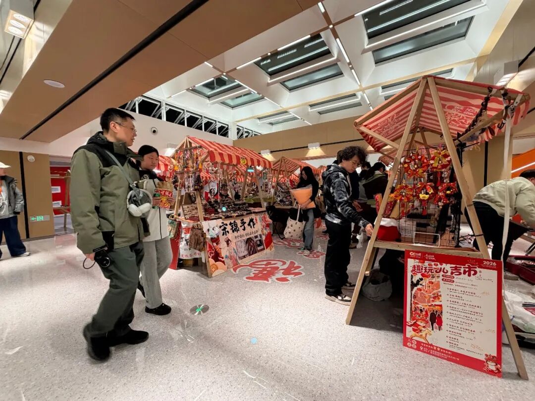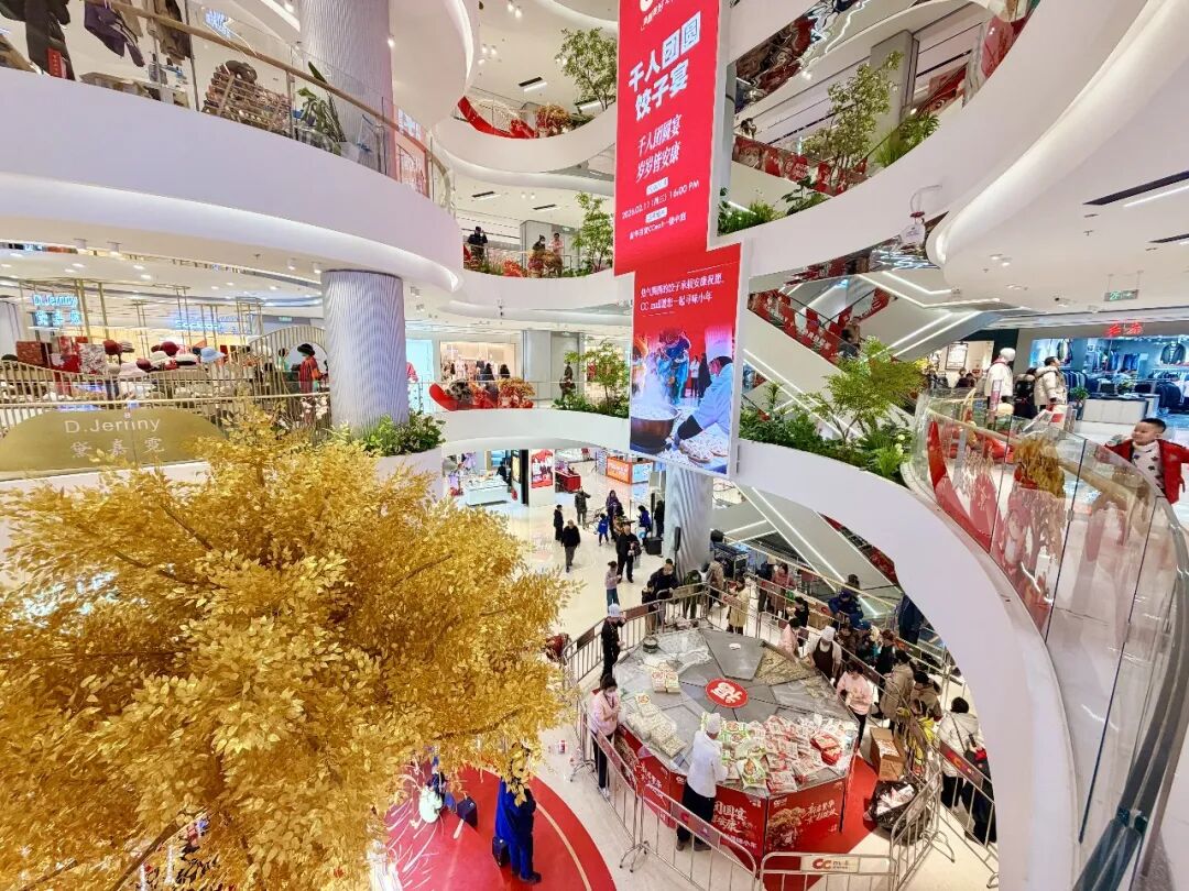 重新开业当天,众多老街坊在此重逢叙旧。商场市集人头攒动,二次元IP展、气球雨、非遗手作等互动活动轮番登场,大人与孩子兴致勃勃地参与其中。一层中庭,一口大锅里正煮着热气腾腾的饺子,等待试吃的队伍从这里一直排到南门门口。