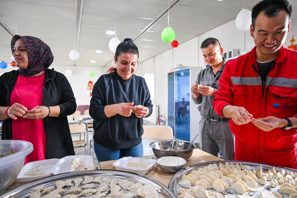 2月16日,在土耳其阿克萨拉伊省图兹湖地下天然气储库扩建项目二期工程营地,中土两国职工在一起包饺子。新华社记者刘磊摄 质量工程师、土耳其小伙阿纳尔正在努力学习中文。他告诉记者,家人其实挺舍不得他在高原工地上工作,但“我喜欢和中国同事在一起,他们热情、坚定,尽管有时在工作上会有分歧,但我们会努力沟通找到解决办法”。(记者:刘磊、王科文;视频:孙硕)