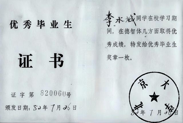 北大优秀毕业生证书(1982)