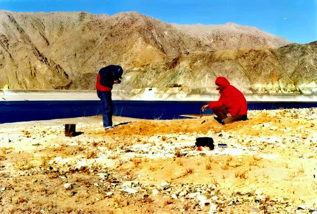 李水城与水涛在河西走廊考古调查(1986)