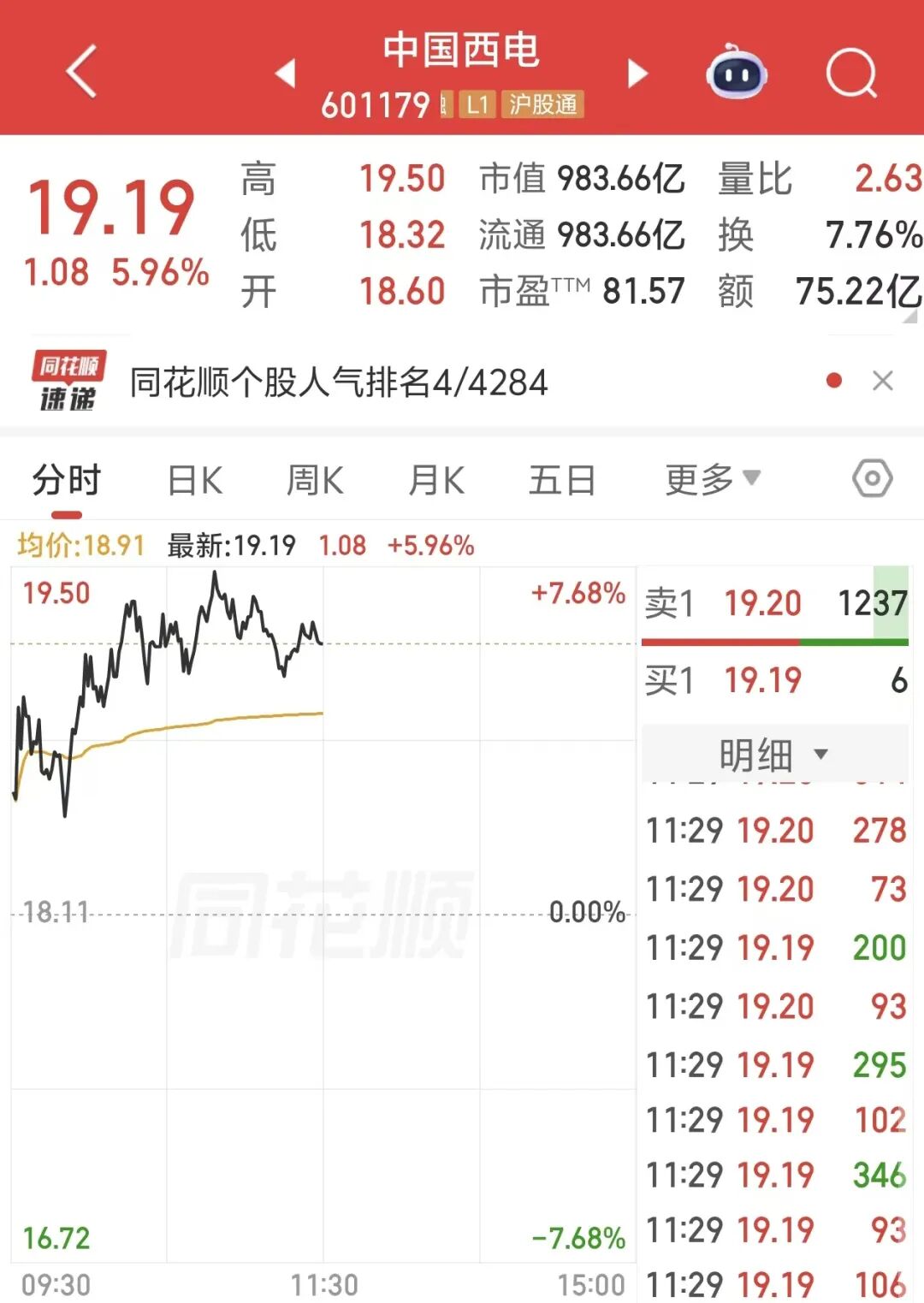 中国西电上午上涨5.96%,盘中股价创历史新高,最新市值为983.66亿元。此外,东方电气、中国能建等龙头股大涨。