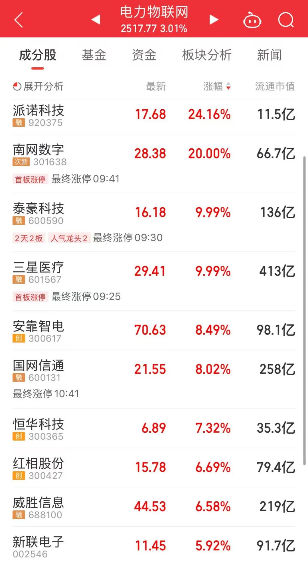 最近,电力概念持续走强。今天上午,电网设备、电力物联网、电源设备等板块上涨。