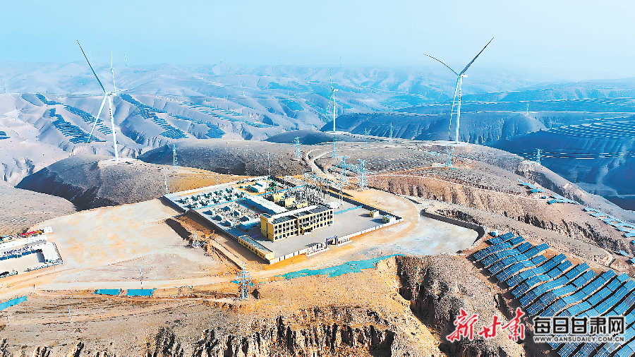 由甘肃电投集团建设的全国首个绿电聚合直供数据中心试点项目——庆阳“东数西算”产业园绿电聚合项目一期工程100万千瓦新能源项目首批机组并网发电。甘肃电投集团供图