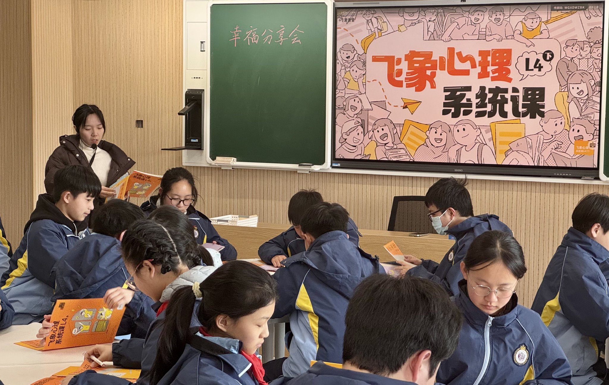 “我最幸福的事,是妈妈每天为我做早餐;感恩爸爸每天早起送我上学;感谢老师默默鼓励我们……”在宁波市海曙区雅戈尔中学的课堂上,学生们手拿白纸,专注地看着屏幕。屏幕里,心理专家引导学生绘制或写下自己的“幸福时刻”;屏幕外,班级教师则根据课程节奏,适时组织学生写下感想、分组讨论、分享交流。在互动环节中,同学们踊跃举手,积极表达对“幸福”的理解。