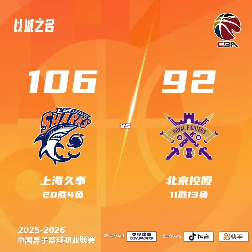 上海男篮106比92击败北控男篮