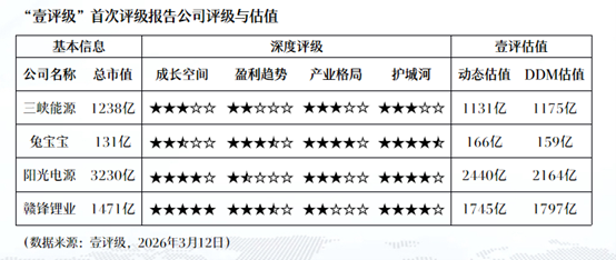 在本次发布的2026年评级报告中,“壹评级”认为,得益于品牌和渠道方面的较强优势,兔宝宝具备较深的护城河,给予4.5星评级;阳光电源的储能系统在线下渠道和技术优势方面表现优异,因此被评定为护城河4星;由于未来锂电池的应用和成长潜力巨大,“壹评级”认为赣锋锂业具备较大的成长空间,给予5星评级。