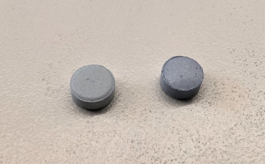 拆开两药盒,各挤出一片:两片药呈深浅不一的淡蓝色,细看能看出夹杂着一些黑色麻点,药片中间有便于掰开的凹痕。记者将药片的照片发给业内人士辨认,他们认为,仅从肉眼来看,这两粒药的均匀度要差一些。