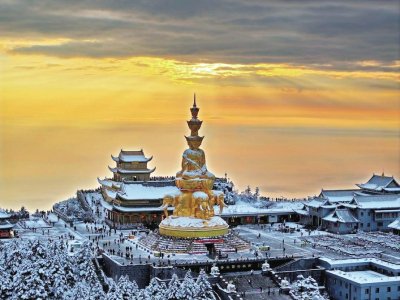 当前,杜鹃已经美不胜收,这里的杜鹃多达29种,除观赏价值外,还具备科研价值和经济价值。到了夏季,峨眉山则是避暑胜地,七八月的平均气温在11.5℃至25℃之间。秋季,片片火红的枫叶,郁郁葱葱的桢楠,色彩斑斓的原始森林,山水云天,交相辉映。冬季,峨眉山无疑是冰雪世界,公开数据显示,峨眉山年平均降雪天数为83天,平均雾凇139天,雨凇141天。冰雪、温泉造就了峨眉山亮丽的风景。