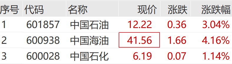 中国海油涨超4%,中国石油涨超3%。