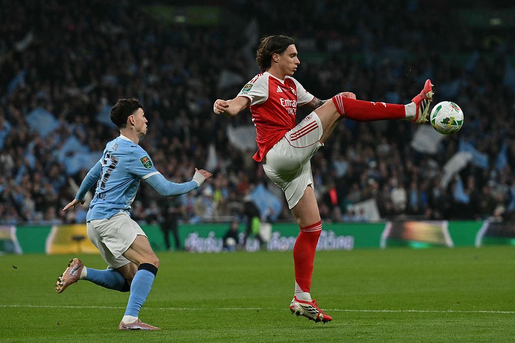 今晨英格兰联赛杯决赛,面对宿敌曼城,被无数人看好的英超领头羊,却以几乎无法组织有效攻势的丑陋姿态,收获一场0比2的完败。阿尔特塔各条战线面对瓜迪奥拉的6场不败作古,也宣告英格兰足坛仍旧无法诞生一支同时捧起英超、欧冠、足总杯和联赛杯的四冠王。