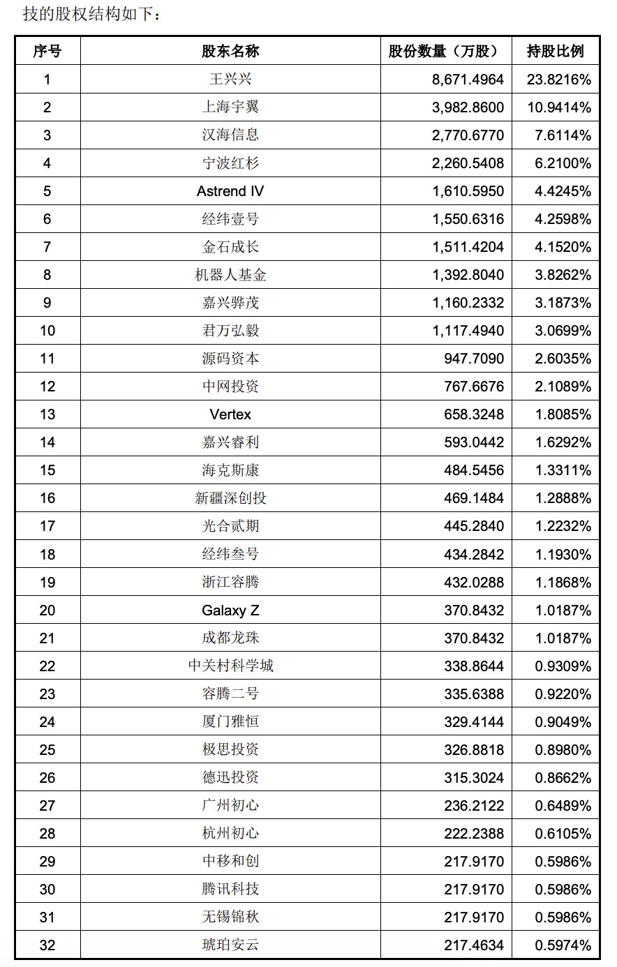 图片来源:宇树科技招股说明书美团成最大外部股东