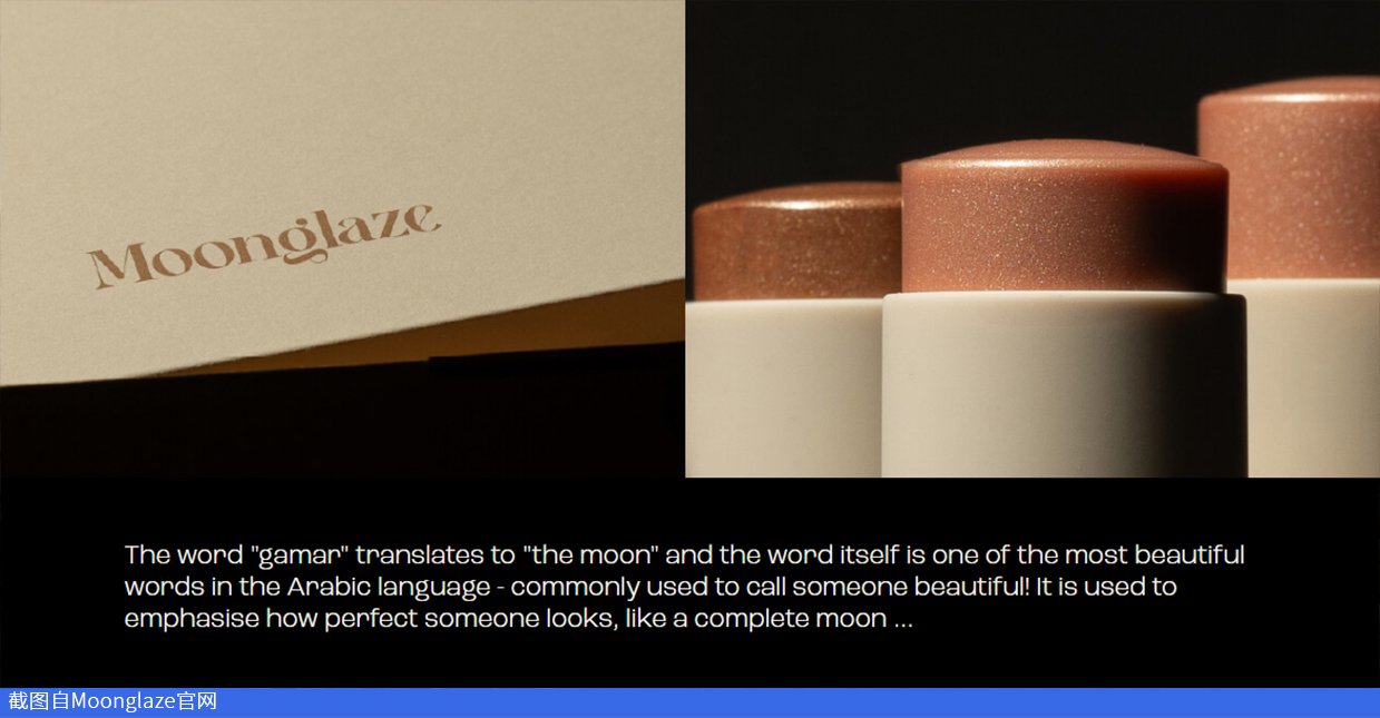 另一类品牌,则更强调文化表达。例如Moonglaze,它是由沙特网红及美妆达人Yara Alnamlah创立的沙特本土高端美妆品牌,以阿拉伯语“qamar”(月亮)为灵感,将本土语言与审美直接写入品牌体系,并成功在2026年进入丝芙兰中东门店。
