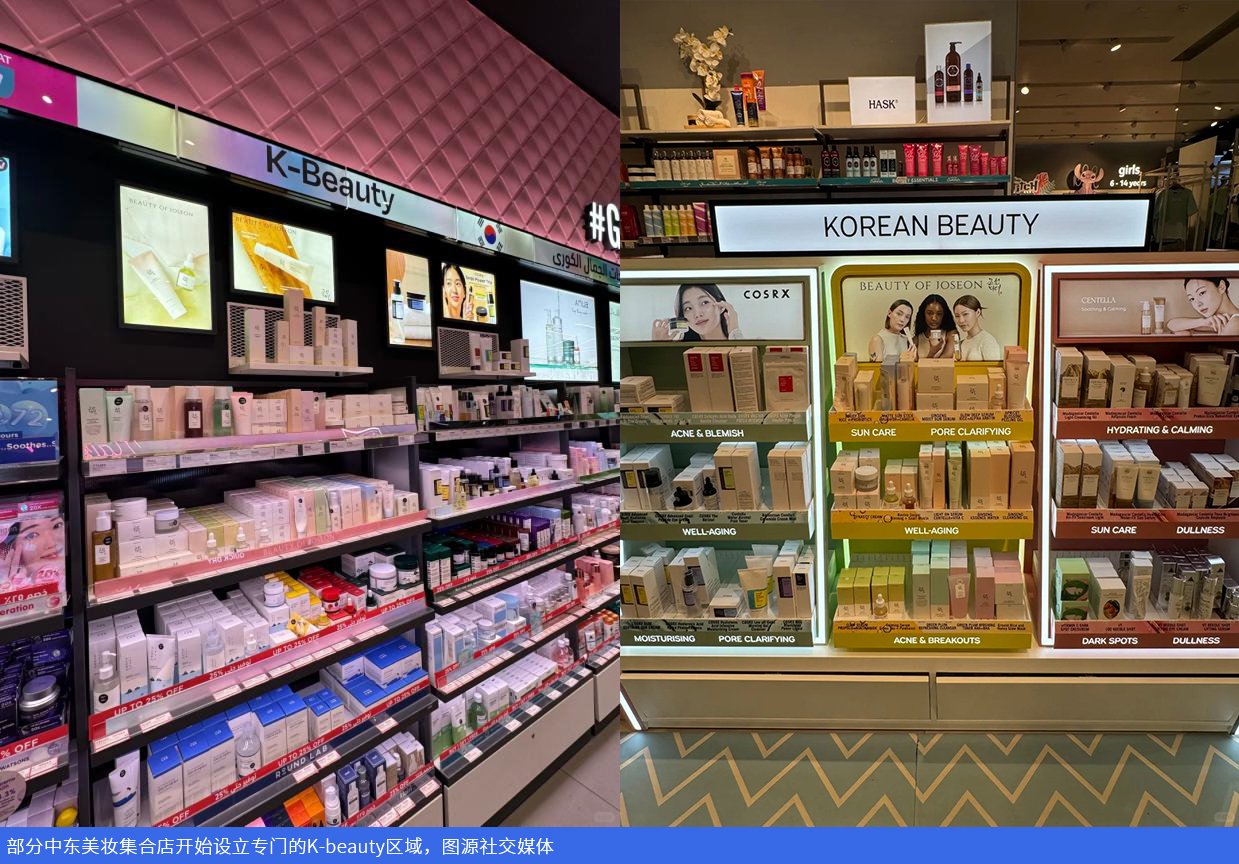 韩国贸易协会数据显示,2025年韩国对阿联酋化妆品出口同比增长67.2%,在沙特、科威特等市场同样保持双位数增长。在线下,一些集合店已经开始单独设立K-beauty区域。这种增长背后,有两条非常清晰的逻辑。