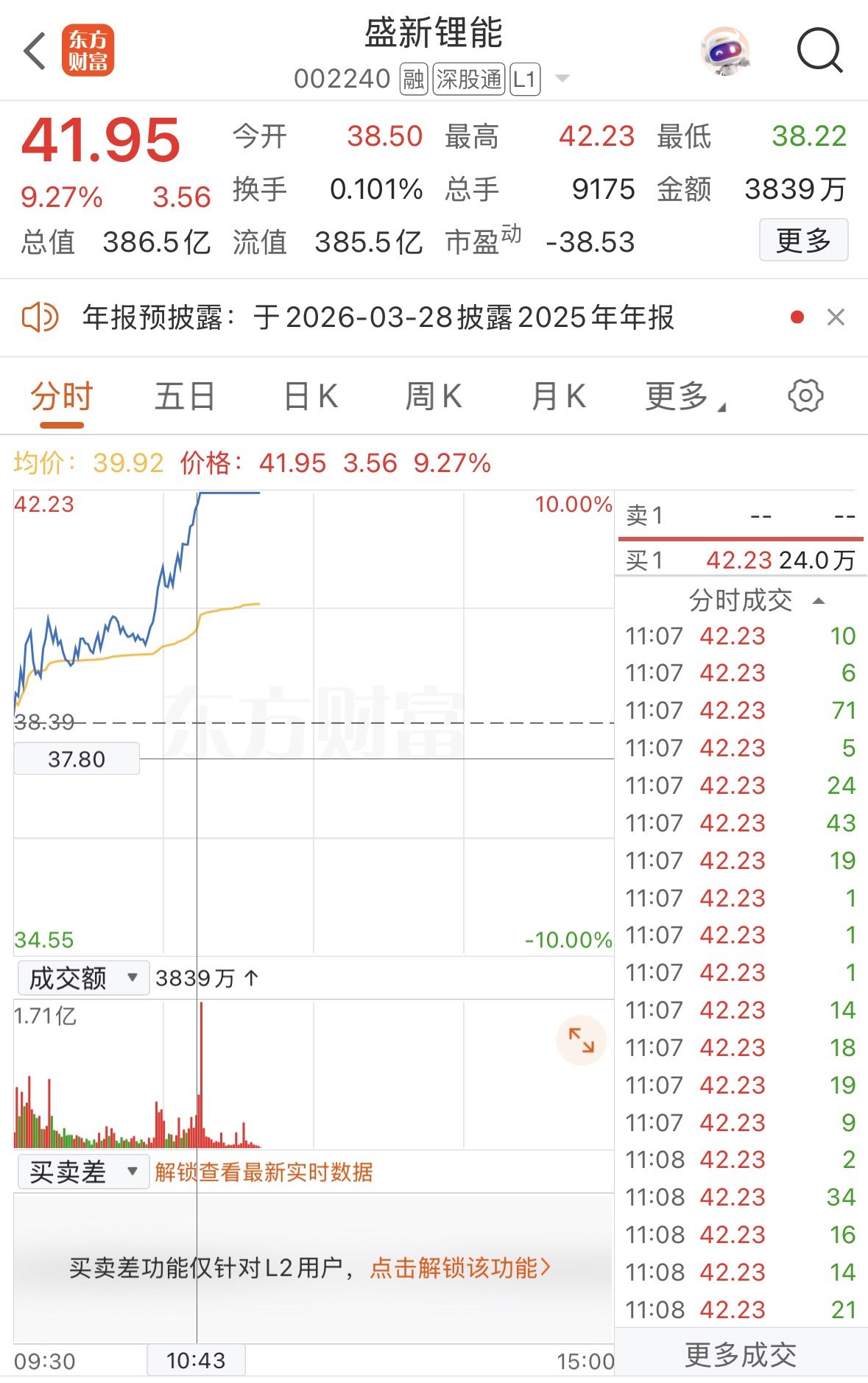 3月27日早盘,川股盛新锂能10:45强势封板,引爆锂矿概念全线走强。板块内江特电机、融捷股份、金圆股份等多股同步涨停,掀起涨停潮。